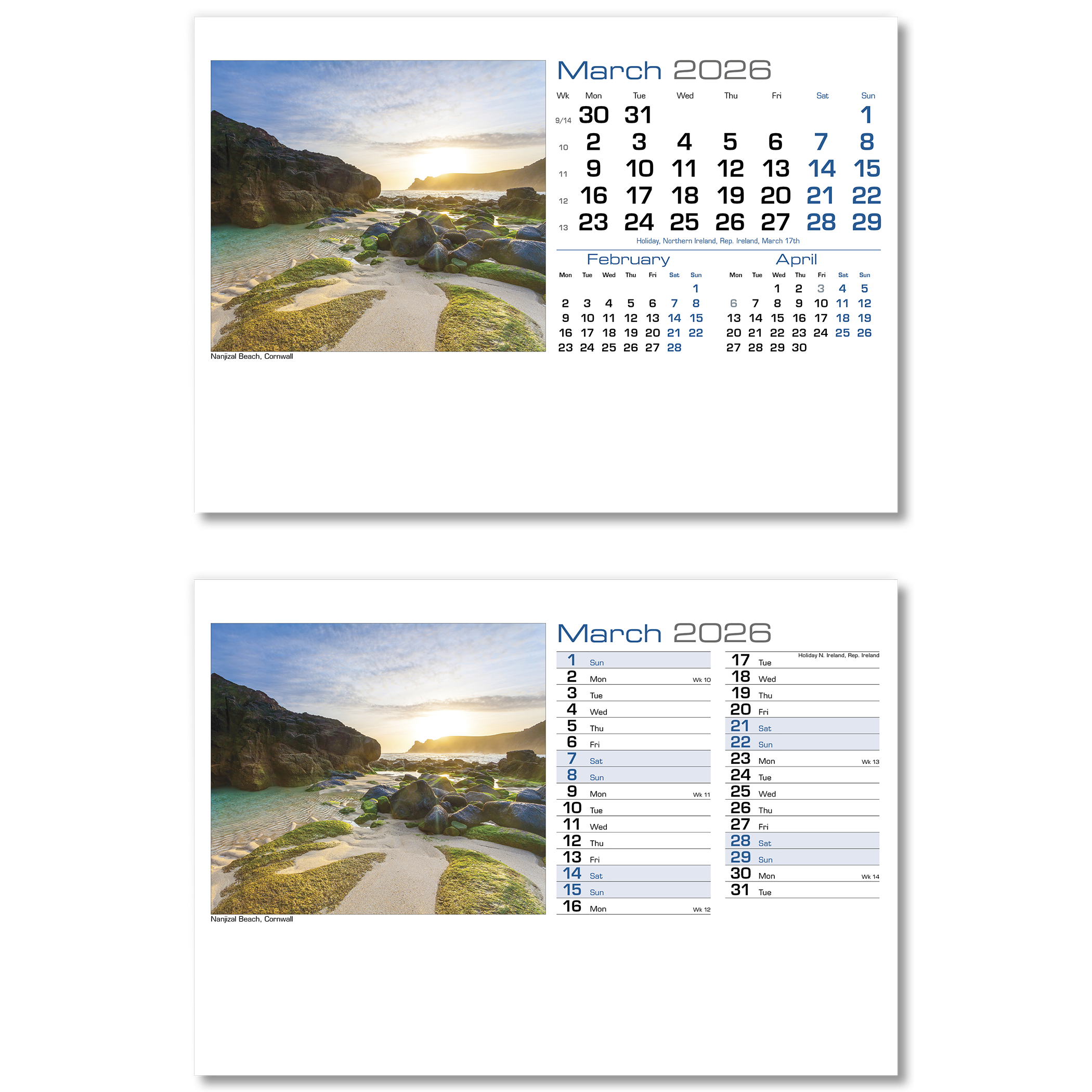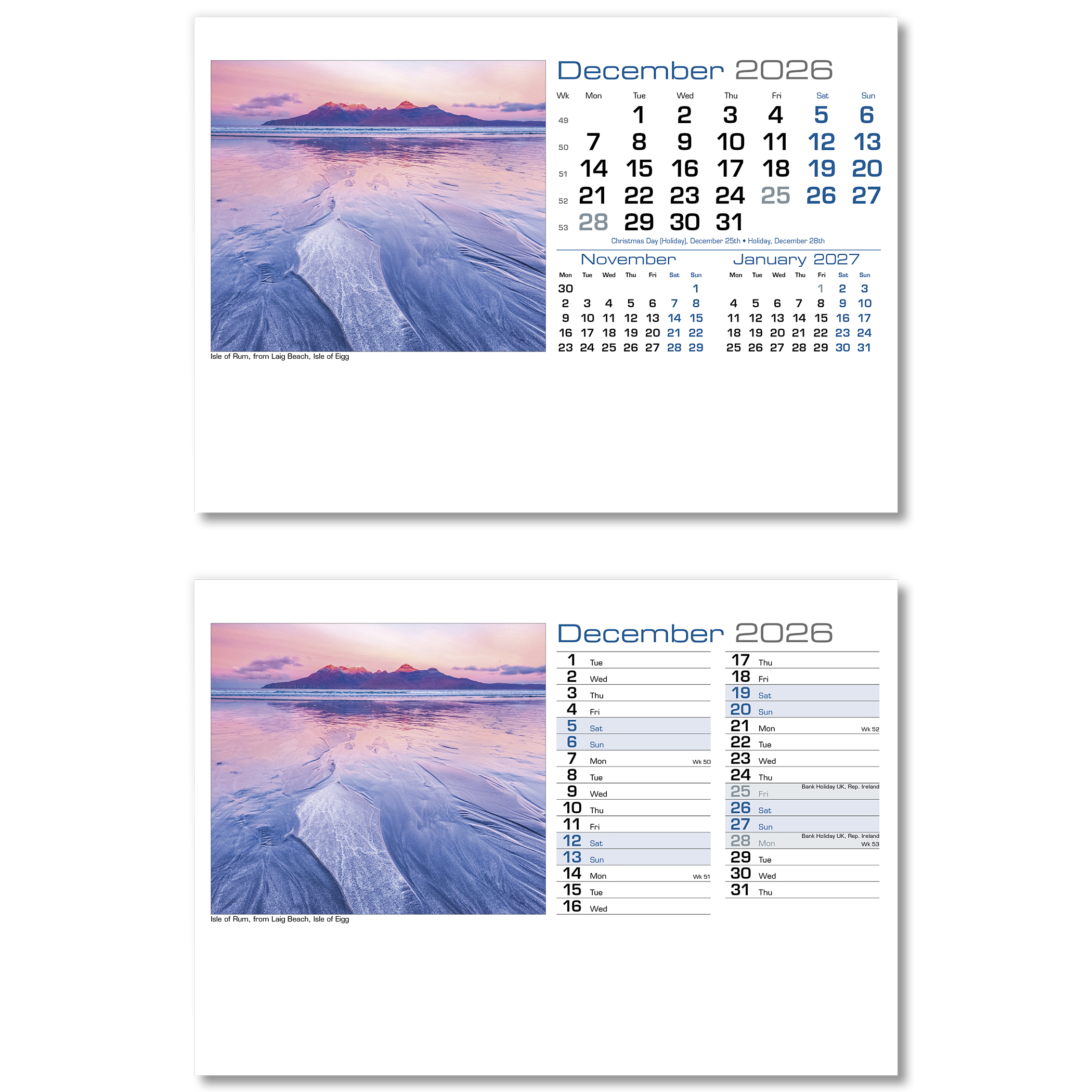 • Landscape Desk Calendars